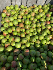 This large green apple originated in New Zealand or Tasmania the mid-1800s. It is a widely recognized and popular variety, known for its distinctive tart flavor, firm texture, and bright green color. We know int he pictures they have a bright red blush to the apples. That is what happens when Granny Smith apples are left on the tree long enough to properly ripen. This richly deepens the flavor and mellows out the sharp tartness of the apples.