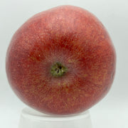 Its fruit are medium in size with a somewhat shiny (its actually a pretty dull apple) burgundy/ merlot color over reddish orange. The WineCrisp is round and uniform in shape and size with little ribbing. It is covered in prominent lenticels and mild vertical striations of red and pale yellow. Its flesh is yellow-white and is medium firm, crispy and juicy. Sweet- mild subacid flavor that is almost warm in consistency.