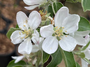 Its blooms are medium in size and numerous but not crowded. Standard apple blooms. See images to the left or below.