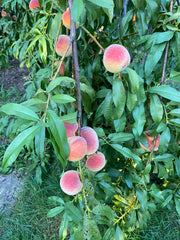 The Contender peach is known for its high yield potential, with an average of 4-5 bushels of fruit per tree. It is also resistant to bacterial spot, which is a common disease in peach trees. This resistance allows growers to use fewer pesticides in the production of the fruit. All Bare Root Trees will ship in Spring 2026. Container trees available for Pick Up or Delivery to certain areas.