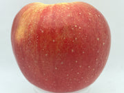 The apple is large, round, and bright ruby red in color. It can have some slight russeting by the stem or calyx but that adds texture to the skin and does not inhibit flavor. The flesh is creamy yellow in color and very crunchy. The apple is sweet, juicy, and easy to eat off the tree. This juiciness makes it an excellent cider apple.