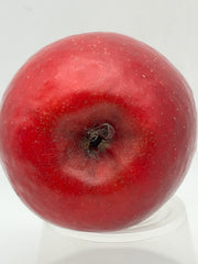 Made available to the public in the 2000s, the Story® Apple (or Story® Inored) is a disease resistant variety from the Novadi Corporation in France. It was bred to be a late apple, disease resistant, and fresh eating. It is conically shaped and striking red covering nearly 95% of the apple. It is very firm, crispy, thick skinned (good for disease resistance and storage), and very sweet. If left on the tree like the first image- it can loose that vertical orientation and darkens quite significantly. The flavor grows more robust with age.