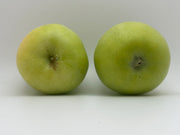 Literally descriptive name, this apple both ripens early and is a golden yellow color. It is nearly perfectly round with a yellow hue that softens to gold as it matures. The Earligold Apple was discovered in Selah, WA as a chance seedling- therefore its parentage is known. In the Central US, this apple ripens in July but later so along the coasts. It is medium to large in size with bright green skin. This skin brightens to yellow with a slight orange blush on the sun side of the fruit. Like most early apples this should be picked slightly before ripeness to attain the balanced tart flavor. The flesh is creamy white and crispy when picked early. Good for dried apple rings as it holds its shape when dehydrated.
