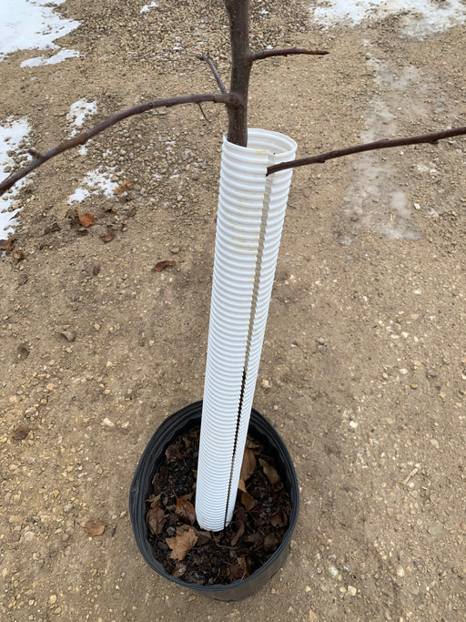 Made of a white, solid plastic, the tree guards measure 24" tall and about 2" wide. Each guard can wrap around a girth medium sized tree and protec...